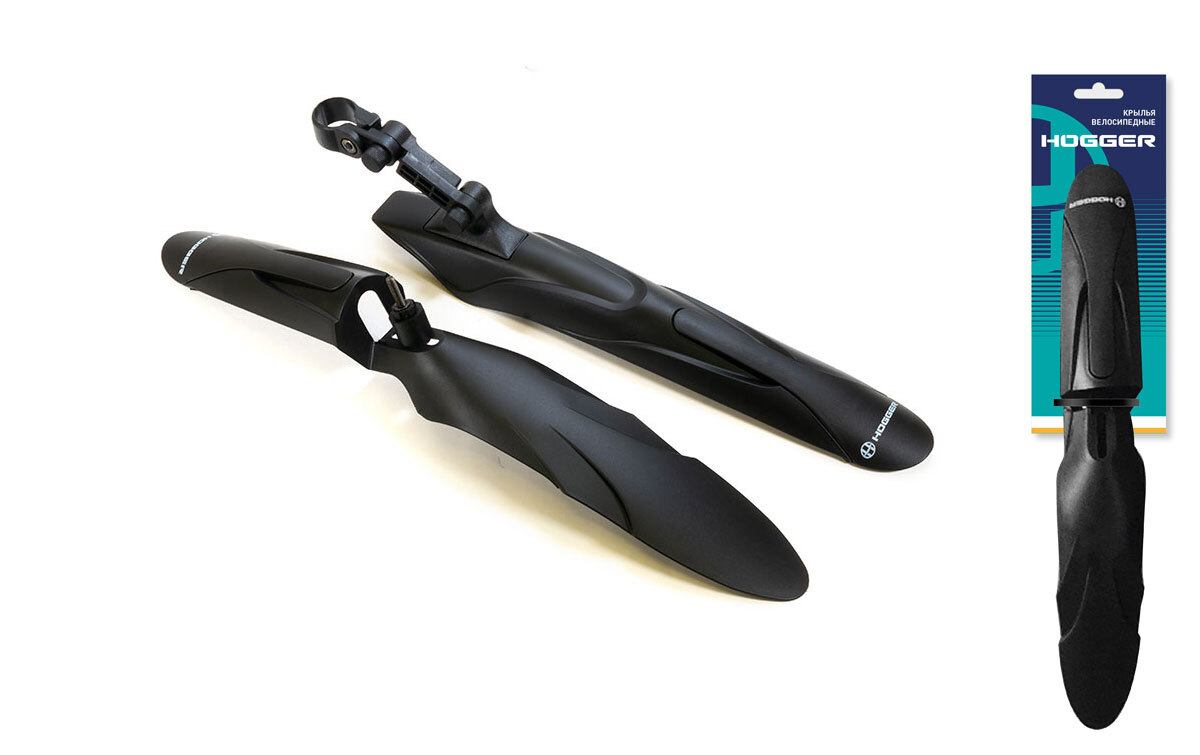 Крылья HOGGER  24-29", к-кт перед./задн., крепеж: перед. в шток вилки, задн. за подседельный штырь; пластик, черные.