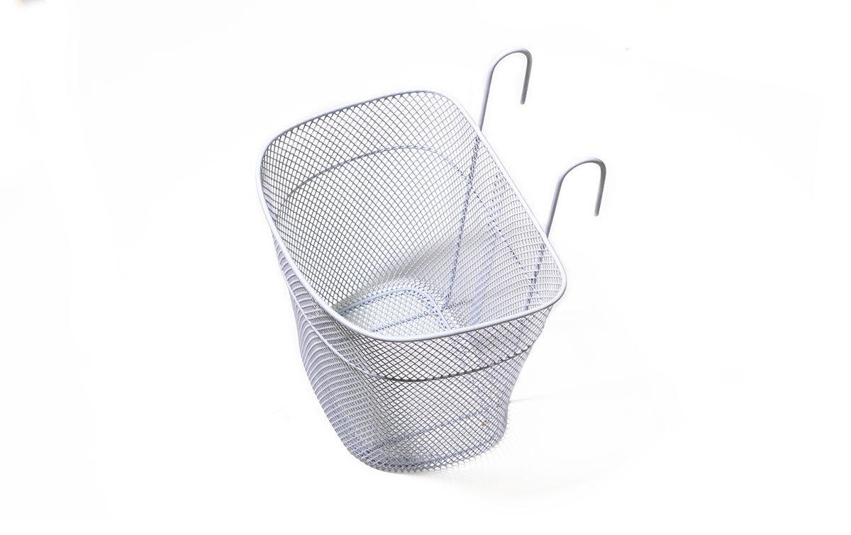 —Велокорзина передняя 270*220*210 мм. быстросъемная, на крюках, стальная, белая