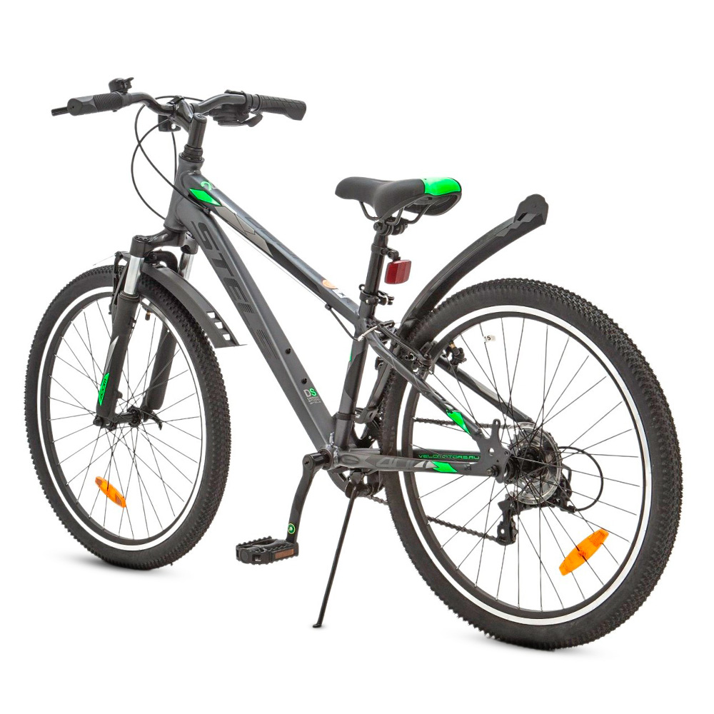 - Ободные тормоза V-типа гарантируют надежное торможение в любой ситуации, а пластиковые крылья защитят от брызг и грязи во время поездок по городским улицам. Картриджная каретка обеспечивает плавный ход педалей и минимальный износ деталей.