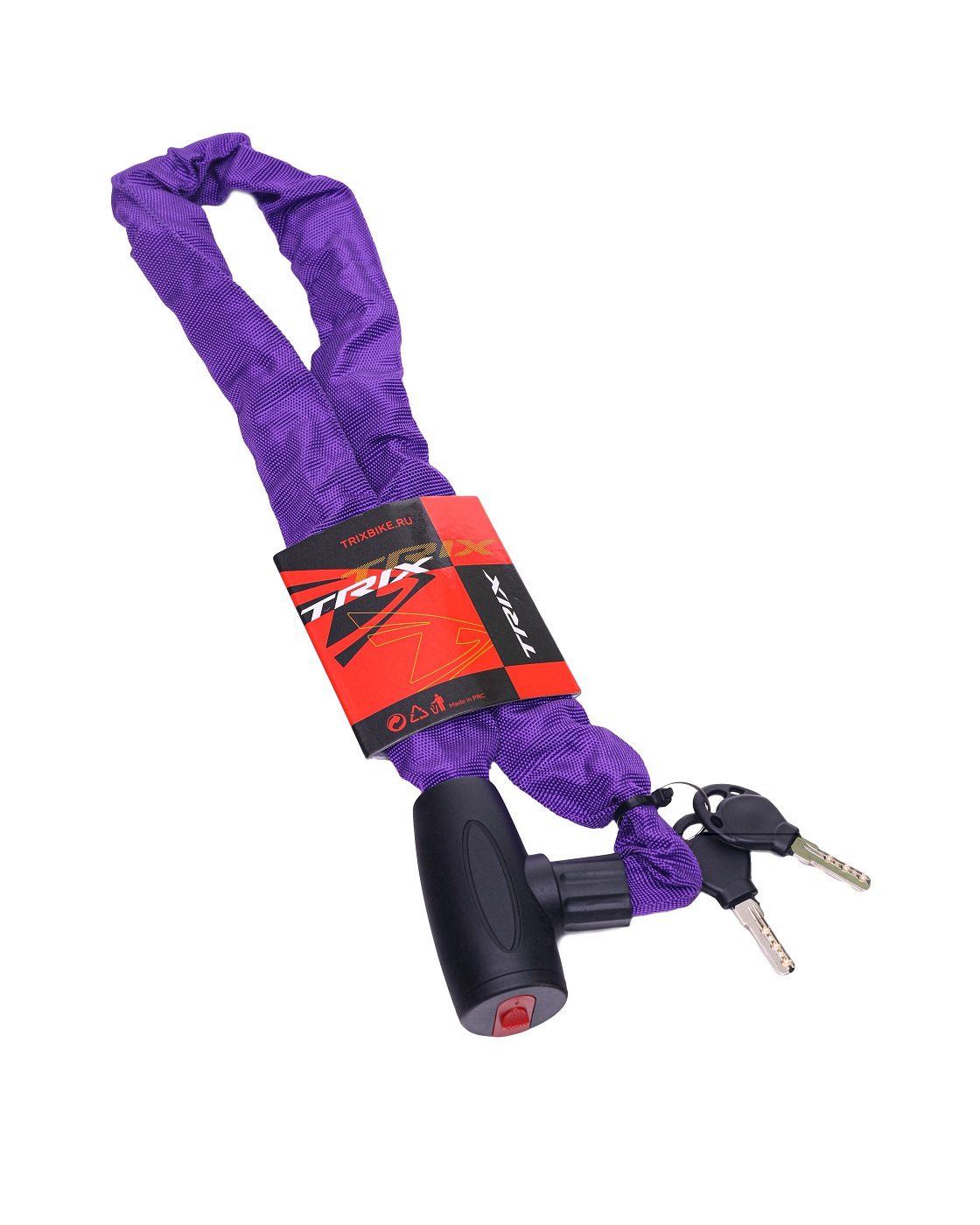 —Замок противоугонный TRIX 6*1000 мм. (цепь+ключи) в тканевой оплётке фиолетовый